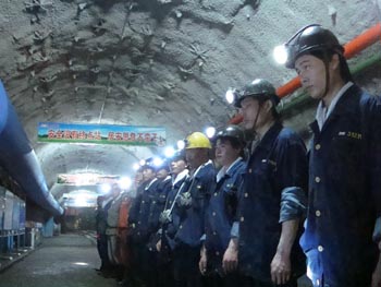 在魯南某礦千米井下,作業(yè)礦工在進(jìn)行班前訓(xùn)示,加強(qiáng)安全警示。本報(bào)記者 呂福明
