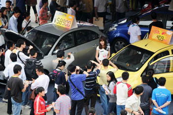 日前,在南寧國際會(huì)展中心舉辦的北部灣(南寧)第四屆汽車展上,50多個(gè)品牌的250多款汽車吸引眾多市民前往參觀選購。香車、美女吸引了眾多市民的眼球,現(xiàn)場(chǎng)熱鬧非凡。圖為南寧市市民在北部灣(南寧)第四屆汽車展上看車。新華社記者 李斌/攝