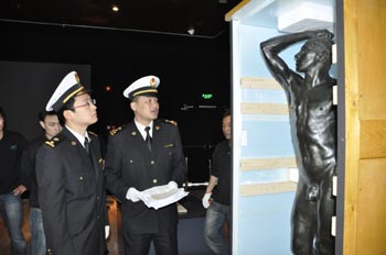與“金色少女”一樣,許多國家的國寶級文物都遠(yuǎn)渡重洋,聚集上海世博會。其中法國奧賽博物館價值超過4億歐元的七件傳世珍品,一亮相就成了世博會的最大熱門,每天慕名來參觀的游客在烈日下排成長龍,蜿蜒不絕。七件展品包括米勒的《晚鐘》、馬勒的《陽臺》、梵高的《阿爾的舞廳》、塞尚的《咖啡壺邊的婦女》、博納爾的《化妝間》、高更的《餐點》以及羅丹的雕塑作品《青銅時代》,都是稀世的藝術(shù)珍品。 “太難得了,(這個是)必須的,排再長的隊也要看!”來自東北的李先生帶著一家人排在長長的隊伍中,一邊擦汗一邊樂呵呵地說。 因為要開箱驗放,上海海關(guān)關(guān)員湯新成為世博會第一時間看到七件法國“寶貝”的“幸運兒”之一!澳苓@么近距離接觸到價值連城的藝術(shù)珍品,真的很幸運,也很自豪。當(dāng)然,心里也有一點緊張,畢竟,這些展品價值超過前期園區(qū)所有展品的價值總和!睖抡f。為保護(hù)這些稀世珍品,海關(guān)驗放工作不再單獨進(jìn)行,而是穿插在整個布展過程中,“整個開箱過程都是由專業(yè)物流人員在文物專家的指導(dǎo)下進(jìn)行,對溫度、濕度要求很高。專家們對展臺進(jìn)行反復(fù)測量,對掛畫的順序也非常講究,”因此,這次驗放格外漫長,差不多從上午10點到下午五點左右才結(jié)束!耙粋上午才放好一個雕塑”。下午三點多,工作人員打開第一個存放畫作的木箱,小心翼翼地?fù)荛_五層保護(hù)墊,梵高的名作《阿爾的舞廳》露出全貌,驚艷全場。 “現(xiàn)場非常安靜,博物館的專家透過放大鏡,對畫作與樣本圖片進(jìn)行比對,檢查畫作狀態(tài),并確認(rèn)真?zhèn)。”盡管帶著手套,湯新并沒有像過去驗放貨物那樣親手接觸到展品!半m然不是零距離,但能這么近距離經(jīng)歷整個過程,實在太難忘了!