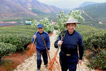 福建省建甌市東游鎮(zhèn)黨口村農(nóng)民在茶山種樹(shù)!∮浾