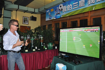 球迷正在北京的一家酒吧通過3D電視觀看世界杯。資料照片 |