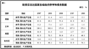 2010年國家信用風(fēng)險(xiǎn)總體水平仍處于高位。2010年全球經(jīng)濟(jì)雖然將結(jié)束收縮,但是產(chǎn)出恢復(fù)的速度總體將較慢且非常不平衡,全球政府債務(wù)規(guī)模卻繼續(xù)快速增長。大公估計(jì)2009年全球財(cái)政收入下降了9.0%,而支出卻增加了3.6%,導(dǎo)致全球赤字水平上升到占國內(nèi)生產(chǎn)總值的7.3%,與2008年比上升了5個(gè)百分點(diǎn),上升幅度達(dá)到217%。2010年全球財(cái)政收入會(huì)有所提高,但仍未恢復(fù)到2008年的水平,在財(cái)政支出繼續(xù)上升的作用下,赤字占國內(nèi)生產(chǎn)總值仍將高達(dá)6.8%(見表2)。 盡管全球國家信用風(fēng)險(xiǎn)總體水平仍在高位,但是各地區(qū)風(fēng)險(xiǎn)的幅度,可控的程度差距很大。中東和非洲國家在金融危機(jī)爆發(fā)前總體上都保持了財(cái)政盈余,拉美和東亞國家略有赤字,除少數(shù)國家外,這些地區(qū)各國債務(wù)水平普遍較低,加之受金融危機(jī)影響較小,總體經(jīng)濟(jì)形勢在2010年將加速好轉(zhuǎn)趨勢,因此金融危機(jī)爆發(fā)后債務(wù)雖有所上升,但風(fēng)險(xiǎn)上升幅度尚可控。中東歐和獨(dú)聯(lián)體國家因國際資本流入恢復(fù)緩慢和出口增長前景不甚樂觀,難以在短期內(nèi)治愈本國的經(jīng)濟(jì)和金融危機(jī),私人部門對(duì)外債務(wù)違約已經(jīng)不可避免,但是加入歐盟的中東歐國家因能夠受到歐盟和國際貨幣基金組織的雙重救助,政府違約的可能性較小。多數(shù)獨(dú)聯(lián)體國家政府直接債務(wù)和擔(dān)保債務(wù)都較輕,雖然私人部門對(duì)外違約幅度大,但政府通過對(duì)私人部門不予大規(guī)模救助的方式保證了自身的償債能力。在上述地區(qū),2010年國家信用風(fēng)險(xiǎn)較大的是烏克蘭、匈牙利、羅馬尼亞、巴基斯坦和越南等。 國家信用風(fēng)險(xiǎn)復(fù)雜化表現(xiàn)在主要發(fā)達(dá)國家信用風(fēng)險(xiǎn)普遍惡化,同時(shí)出現(xiàn)局部危機(jī),其未來發(fā)展演變具有較大的不確定性。發(fā)達(dá)國家史無前例的政策干預(yù)使財(cái)政在可持續(xù)性上面臨越來越步履維艱的困境。2010年美國、英國、愛爾蘭、希臘、冰島等國政府的赤字占國內(nèi)生產(chǎn)總值的比例都將在10%以上,其他主要發(fā)達(dá)國家日本、德國、法國、意大利、西班牙的赤字水平也將處于高位。日本、意大利、冰島、希臘、比利時(shí)等國的各級(jí)政府債務(wù)占國內(nèi)生產(chǎn)總值的比例超過100%;美國、葡萄牙、法國等國的各級(jí)政府債務(wù)占國內(nèi)生產(chǎn)總值的比例達(dá)到90%以上;德國、愛爾蘭、加拿大、英國等各級(jí)政府債務(wù)占國內(nèi)生產(chǎn)總值的比例在80%以上(部分?jǐn)?shù)據(jù)見表3)。歐元區(qū)國家中的薄弱環(huán)節(jié)希臘、葡萄牙、西班牙等因經(jīng)濟(jì)繼續(xù)萎縮,而債務(wù)快速上升引起了市場的深度擔(dān)憂,導(dǎo)致利率飆升,希臘已經(jīng)無法從市場融資而步入國際貨幣基金組織和歐盟多邊援助的行列。由于歐元區(qū)國家各級(jí)政府債務(wù)被國外投資者持有的比例非常高,其中包括大量金融機(jī)構(gòu),這使風(fēng)險(xiǎn)容易擴(kuò)散到還正在去杠桿化的全球金融體系,國家信用風(fēng)險(xiǎn)已經(jīng)成為新的金融風(fēng)險(xiǎn)來源。歐元區(qū)國家不得不以各國財(cái)政做擔(dān)保救助危機(jī)國的措施雖暫時(shí)穩(wěn)定了局勢,但能否引領(lǐng)歐元區(qū)走出危機(jī)尚不確定。歐元為全球第二大儲(chǔ)備貨幣,歐元區(qū)主權(quán)債務(wù)危機(jī)對(duì)與歐元區(qū)國家聯(lián)系較緊密的其他國家的經(jīng)濟(jì)和金融前景都將產(chǎn)生不利影響。 發(fā)達(dá)國家信用風(fēng)險(xiǎn)的上升既有金融危機(jī)的促成作用,也是歷史上長期存在制度性困境的結(jié)果,其發(fā)生和深化是必然的。 資本主義市場經(jīng)濟(jì)制度會(huì)導(dǎo)致金融債務(wù)的不斷膨脹和財(cái)富的日益集中,從而在一定的條件下演化為經(jīng)濟(jì)危機(jī)。當(dāng)經(jīng)濟(jì)增長速度快時(shí),勞動(dòng)者和政府收入的增長也較快,掩蓋了其危害性。自上世紀(jì)七十年代以來,老牌資本主義國家的經(jīng)濟(jì)因缺乏增長動(dòng)力出現(xiàn)停滯趨勢,為此發(fā)達(dá)國家普遍開展了新自由主義經(jīng)濟(jì)改革,導(dǎo)致分配向著有利于非勞務(wù)性收入的方向發(fā)展,財(cái)富越來越集中在少數(shù)人手中。與之配套的稅收改革使稅收負(fù)擔(dān)的90%落在產(chǎn)品和勞務(wù)身上,使稅收增長與經(jīng)濟(jì)增長高度相關(guān),在發(fā)達(dá)國家經(jīng)濟(jì)增長率普遍偏低的情況下,稅收收入的增長也是緩慢的。由于政府和勞動(dòng)階層收入增長緩慢,支出能力下降,資本為了維持其贏利性,需要通過向政府和大眾提供債務(wù)的方式促進(jìn)增長。因此老牌發(fā)達(dá)國家債務(wù)飆升成為過去四十年資本主義經(jīng)濟(jì)最突出的特征之一。 發(fā)達(dá)國家政府債務(wù)負(fù)擔(dān)普遍較重的另一個(gè)主要原因是社會(huì)福利支出過高。發(fā)達(dá)國家長期通過優(yōu)厚的社會(huì)福利制度彌補(bǔ)因貧富懸殊造成的不公平現(xiàn)象,福利支出占據(jù)了財(cái)政支出的很大部分。2004-2008年歐盟各國