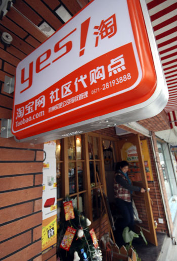 今年初,淘寶網(wǎng)宣布進(jìn)軍線(xiàn)下零售,授權(quán)副食店、超市、連鎖店等社區(qū)店成為淘寶網(wǎng)指定代購(gòu)店,為不會(huì)上網(wǎng)的消費(fèi)者提供服務(wù)到家的網(wǎng)購(gòu)、充值繳費(fèi)等電子商務(wù)服務(wù)。新華社發(fā)(黃宗治 攝) |