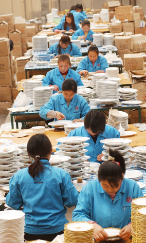 在中國“瓷都”的字典里里有景德鎮(zhèn)、有唐山、有淄博,看起來朔州的瓷器并不是很出名,但實際上朔州的陶瓷生產(chǎn)歷史可以追溯到四五千年之前,也就是說景德鎮(zhèn)陶瓷的歷史和朔州陶瓷歷史差不多。當(dāng)?shù)厝私榻B說“由于朔州位于漢民族和其他少數(shù)民族經(jīng)常交戰(zhàn)的地區(qū),所以沒有形成官窯,因而在中國的歷史記載中就沒有了。” 據(jù)了解,事實上朔州境內(nèi)的瓷土質(zhì)地較好,據(jù)國家有關(guān)部門檢驗,其瓷土品質(zhì)都在95%以上,都是優(yōu)質(zhì)瓷土。早在北宋時期,朔州的陶土就聞名于世,尤其是懷仁儲量豐富的高嶺土,被業(yè)界權(quán)威譽為國寶。 朔州陶瓷業(yè)真正快速發(fā)展是在20世紀90年代。目前,朔州是全國較大的日用瓷生產(chǎn)基地。全市共有規(guī)模以上日用陶瓷企業(yè)49個,93條生產(chǎn)線,年可生產(chǎn)日用陶瓷11.66億件,琉璃瓦200萬件,墻地磚500萬平方米,中高鋁球12萬噸。2009年,實際生產(chǎn)日用陶瓷5.13億件,琉璃瓦100萬件,墻地磚100萬平方米,中高鋁球1.5萬噸,完成總產(chǎn)值約5億元,占全市工業(yè)總產(chǎn)值651.8億元的0.73%!伴_足馬力生產(chǎn),我們可以一年產(chǎn)13到14億件產(chǎn)品。也就是說給全國人民每人可以生產(chǎn)一個!笔邪l(fā)改委副主任李明表示。興盛的陶瓷產(chǎn)業(yè),不僅帶動了數(shù)萬農(nóng)民實現(xiàn)就業(yè),同時也增加了農(nóng)民的收入。作為全國重要的陶瓷產(chǎn)業(yè)基地,近年來,朔州的陶瓷行業(yè)正在進行大力的技術(shù)工藝改造,逐步由低檔產(chǎn)品向中高檔產(chǎn)品轉(zhuǎn)型,產(chǎn)業(yè)規(guī)模不斷壯大,已成為全市的特色產(chǎn)業(yè)。 懷仁縣是朔州陶瓷的生產(chǎn)大縣。全縣共有企業(yè)32個,66條生產(chǎn)線,日用瓷年生產(chǎn)能力達到6億件,占全國市場份額的三分之一以上;2009年,實際生產(chǎn)日用陶瓷2.35億件,琉璃瓦100萬件,墻地磚100萬平方米,實現(xiàn)產(chǎn)值2.79億元。 事實上,懷仁的陶瓷歷史由來已久。專家考證,懷仁陶瓷興起于唐代,興盛于遼金,鼎盛于明清。據(jù)說,在小峪、吳家窯、鵝毛口三處古窯遺址說明,早在遼金時期,懷仁陶瓷生產(chǎn)已經(jīng)具備了相當(dāng)?shù)囊?guī)模。在懷仁,更多的歷史時期都在生產(chǎn)碗這樣的日常生活陶瓷器皿,即使是今天,也主要以生產(chǎn)日用瓷為主。當(dāng)?shù)厝烁嬖V記者“當(dāng)人們都把目光投向珍玩古器中已經(jīng)成為文物的工藝瓷時,他們忘記了手中端著一個普通的碗,即使是一個粗瓷大碗,這碗都可能來自懷仁! 位于懷仁縣云東經(jīng)濟園區(qū)的佳美樂陶瓷有限公司是當(dāng)?shù)赜忻拿駹I企業(yè)。公司負責(zé)人劉國強向記者介紹說:“我們創(chuàng)建于2001年,占地面積173畝,現(xiàn)在大約擁有員工1300多人。公司現(xiàn)有燃氣日用陶瓷生產(chǎn)線9條,煤氣發(fā)生站1條,我們是以生產(chǎn)日用瓷為主,約有60—70個豐富品種。公司生產(chǎn)的高白瓷、新骨瓷、強化瓷等在國內(nèi)外銷路也不錯!痹诠(jié)能環(huán)保方面,佳美樂于2007年至2008年間投資1000多萬元對原陶瓷生產(chǎn)線進行環(huán)保改造,改燃煤為燃氣,改變了燃燒結(jié)構(gòu),減少了大氣污染,建了一座廢水處理站,實現(xiàn)了高效清潔生產(chǎn)。 此外,記者了解到,在懷仁縣還有多家生產(chǎn)規(guī)模較大的企業(yè)?偼顿Y3億元的恒源瓷業(yè)有限公司,一期工程已建成國內(nèi)最先進的日用瓷隧道窯2條、輥道窯1條,干燥線16條進入試生產(chǎn)階段。一期工程正式投產(chǎn)后,可年生產(chǎn)日用瓷6000萬件,產(chǎn)值1.2億元;總投資2億元的晶屹陶瓷建材有限公司,一期工程也已建成、投產(chǎn)拋光磚生產(chǎn)線1條,年生產(chǎn)高檔地磚400萬平方米,產(chǎn)值約為2.5億元。全部二期項目建成投產(chǎn)后,產(chǎn)值可達5億元。 |