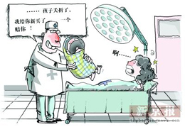 2006年2月,新疆一位年輕孕婦在昌吉市恒安堂醫(yī)院生產(chǎn)。由于醫(yī)生誤診,導(dǎo)致嬰兒出生即夭折、產(chǎn)婦大出血后切除全部子宮。事故發(fā)生后,醫(yī)院院長(zhǎng)偷偷打來(lái)電話說(shuō)買了個(gè)女嬰賠給他們。(4月24日《中國(guó)青年報(bào)》)