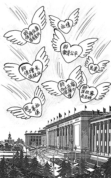 今年的兩會是在國際金融危機席卷全球的特殊背景下召開的。數(shù)不清的社情民意搭乘互聯(lián)網(wǎng)的直通車匯入人民大會堂;關(guān)注民生,匯聚民意,今年的全國兩會,更寄托著人民群眾保增長、惠民生、促和諧的殷切期盼。