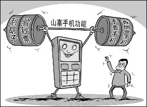 一些讓人覺得不可能存在的、配備獨(dú)特功能的手機(jī),現(xiàn)在也在中國出現(xiàn)了。比如帶有剃須功能的“剃刀手機(jī)”,能識別假幣的手機(jī),在科幻動畫片中經(jīng)常出現(xiàn)的道具手表也被開發(fā)成手機(jī)了。這些都是一些不出名的廠商靠創(chuàng)意打開銷路的做法。