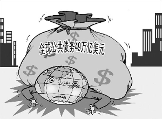 2008年全球的公共債務(wù)總額占全球國(guó)內(nèi)生產(chǎn)總值的63%,為10年多來(lái)最低水平。但在危機(jī)環(huán)境下,今明兩年各國(guó)公債大增,穆迪公司最新發(fā)布的一份報(bào)告估計(jì),2010年全球公共債務(wù)總額預(yù)計(jì)將達(dá)49萬(wàn)多億美元,占比將達(dá)80%。