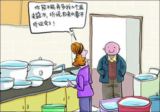 本月16日自來(lái)水價(jià)格調(diào)整將召開(kāi)聽(tīng)證會(huì),自來(lái)水價(jià)格可能會(huì)上漲,家住北京順義的居民聞?dòng)嵓械巾樍x自來(lái)水公司大量購(gòu)水。由于北京順義區(qū)的購(gòu)水上限為500噸,不少居民甚至一次性買(mǎi)回足夠未來(lái)5年使用的水量。