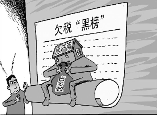 北京市地稅局日前發(fā)布欠稅“黑榜”,35家上榜企業(yè)每家累計欠繳800萬元以上。房地產(chǎn)及相關行業(yè)公司占比約為八成,其中北京中地房地產(chǎn)公司欠稅高達1.44億元。再說房地產(chǎn)開發(fā)周期長、前期預算不準等理由,是不是太牽強了些?