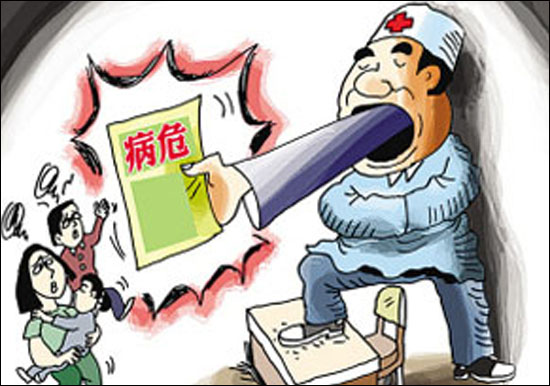 重慶某醫(yī)院醫(yī)生沒詳細檢查患兒就開了病危通知書,三歲女孩外婆險些暈倒。結(jié)果只是普通感冒,三天后孩子就沒事了(1月21日《重慶晚報》)。