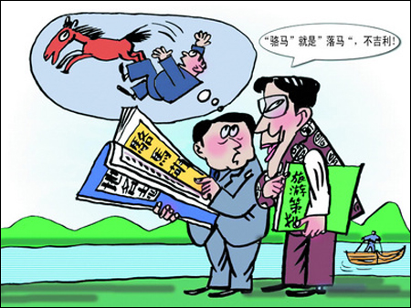 具有千年歷史底蘊(yùn)的“駱馬”,都能被聯(lián)想成“落馬”?梢(jiàn),只要沒(méi)事瞎琢磨,抑或心里有鬼,那沒(méi)準(zhǔn)任何兩個(gè)不相干的字連一起,你都能洞悉其不為人知乃至“別有用心”的一面來(lái)。不信,你點(diǎn)開(kāi)新聞跟帖,會(huì)發(fā)現(xiàn)有好事的網(wǎng)友,把全國(guó)大多數(shù)省市名稱都“聯(lián)想”了一遍,牽強(qiáng)附會(huì)之下,任何一個(gè)名字都難!罢握_”啊。