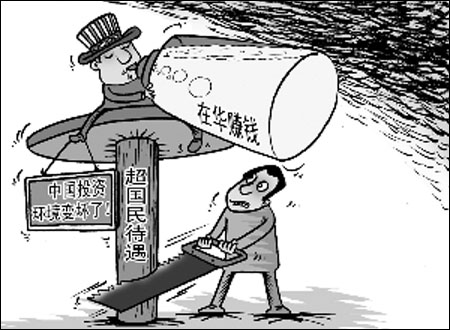 在常年享受超國民待遇后,當(dāng)中國開始對外資、內(nèi)資企業(yè)一視同仁時(shí),美國企業(yè)紛紛叫嚷起來:“中國在搞貿(mào)易保護(hù)”,“中國投資環(huán)境變差了”!美國人的市場經(jīng)濟(jì)哲學(xué)不就是大家在平等起點(diǎn)上競爭么?怎么老是雙重標(biāo)準(zhǔn)呢?