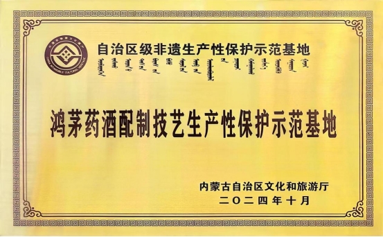 6月14日,在內(nèi)蒙古自治區(qū)“文化和自然遺產(chǎn)日”主會場活動中,鴻茅藥酒配制技藝生產(chǎn)性保護示范基地被正式授予“自治區(qū)級非遺生產(chǎn)性保護示范基地”稱號并頒發(fā)牌匾。