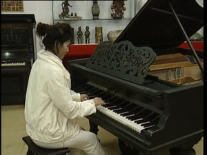 近日,在中國黑龍江省牡丹江市步行街古玩市場內(nèi),兩臺“古董”鋼琴引起人們關(guān)注。據(jù)專家判定,這兩臺鋼琴是前沙俄皇帝的御用鋼琴,至今已歷經(jīng)一個(gè)多世紀(jì)的歲月。 據(jù)了解,這兩架鋼琴,一架為三角鋼琴,一架為立式鋼琴,它們的擁有者是牡丹江市的收藏愛好者裘憲濤。據(jù)他介紹,這架已經(jīng)150歲的三角鋼琴品牌是別克(J.BECKER),琴譜架由雕刻精美的俄文組成,琴上鎏金鑲嵌了沙俄雙禿頭鷹國徽,并且在琴弦下方寫有古俄文字樣。經(jīng)專業(yè)人士鑒定,這兩臺鋼琴屬于前沙俄皇帝,生產(chǎn)年份是1860年。 另一臺立式鋼琴的品牌為施羅德,琴蓋上鑲嵌的三個(gè)徽章,從左到右分別代表著俄羅斯沙皇的私人皇旗徽章、沙俄雙禿頭鷹國徽和沙俄的民族徽標(biāo)。鋼琴的背面印有俄羅斯第一鋼琴廠的廠商說明書,上面有“皇家鋼琴專門制造者”的字樣。據(jù)記載,此臺鋼琴的離廠年份是1885年,距今已有125年的歷史。 收藏這兩架鋼琴的裘憲濤對記者說,能夠把這兩架鋼琴維護(hù)起來,是對社會(huì)的一種義務(wù)。他會(huì)非常小心的愛護(hù)它,保養(yǎng)它。 在現(xiàn)場記者還看到一些慕名而來的鋼琴愛好者,他們對這兩臺“古董”鋼琴愛不釋手。牡丹江教育學(xué)院高級鋼琴教師李明認(rèn)為,這兩臺鋼琴無論從音色、柔韌程度還是明亮力方面都比國產(chǎn)鋼琴好很多,彈了一曲感覺很過癮。 據(jù)專業(yè)人士介紹,這兩臺古鋼琴經(jīng)過一個(gè)多世紀(jì)的洗禮仍保存完好,依然能彈奏出美妙的琴音,實(shí)屬不易。