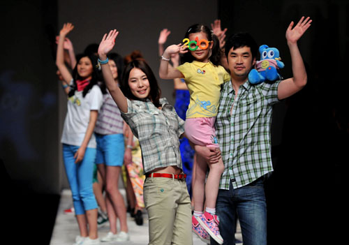 2010上海時裝周秋冬作品發(fā)布會近日落下帷幕。本次時裝周以“中國創(chuàng)造 時尚世博”為主題,有30多名設(shè)計師參與,各類發(fā)布會將達(dá)20場。圖為模特在上海時裝周秋冬作品會上進(jìn)行“世博歡樂一家行”情景展示。新華社發(fā)