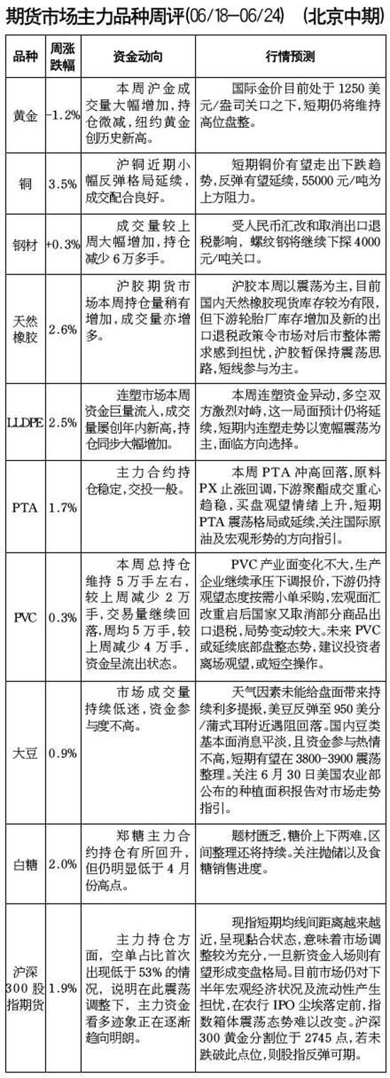 期貨市場(chǎng)品種周評(píng)[6.18-6.24]