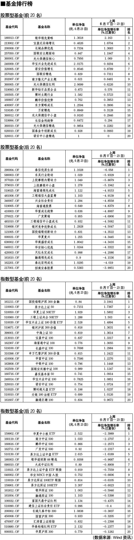 股票型基金排行榜[2010-06-25]