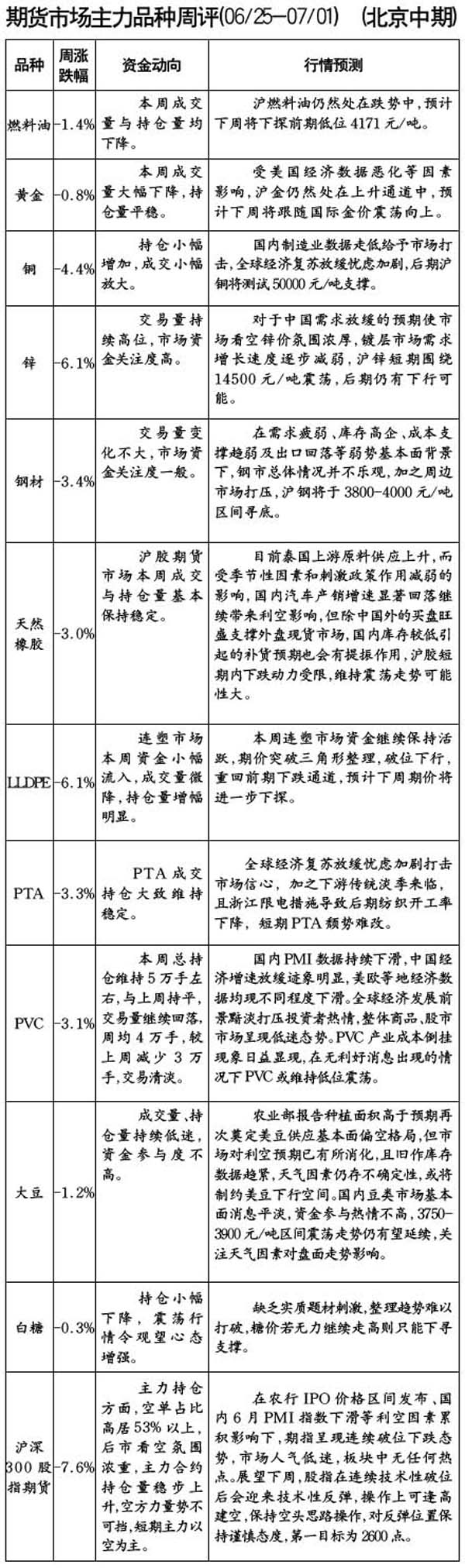 期貨主力品種周評[06.25-07.0]