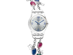 斯沃琪月光寶石·浪漫名媛淑女腕表(LadyMaona)的表鏈繼承了斯沃琪Bjioux的色彩和繁花圖案,采用拋光不銹鋼316L制造,由略呈拱形的橢圓團(tuán)花構(gòu)成,飾以彩色半透明合成樹脂。橢圓團(tuán)花與優(yōu)美的花卉吊飾從鏈條上垂掛而下,通往透明的塑料表殼。優(yōu)雅的設(shè)計凸顯了腕表的精致與名媛氣質(zhì)。