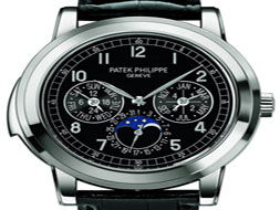 5074P鉑金腕表42毫米鉑金表殼氣魄非凡,其左端滑塊可啟動(dòng)兩響教堂琴音報(bào)時(shí)裝置。這款自動(dòng)上弦腕表的另一復(fù)雜功能是指針可顯示星期、日期、月份及閏年,并配備月相顯示的萬(wàn)年歷。表殼:鉑金材質(zhì),圓形表殼,藍(lán)寶石水晶底蓋可顯示機(jī)芯運(yùn)轉(zhuǎn),亦可更換為鉑金底蓋。表盤(pán):烏木黑色漆面,葉形指針,阿拉伯?dāng)?shù)字時(shí)標(biāo),軌道式分鐘刻度。機(jī)芯:Calibre