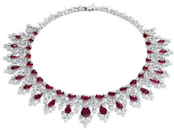 Hollywood星光大道上巨星艷麗回眸,垂落的層疊式鉆石如飛瀑傾瀉頸項之間,奢華之花猛然間綻放,瞬間獵殺菲林無數(shù),美艷奢華驚艷世界。Harry Winston曠世巨作紅寶石鉆石項鏈,利用水滴形、馬眼形、圓形明亮式切工的鉆石,將全球僅存3%并耗時2年才收集完全的無雜質(zhì)絢麗珍貴紅寶石層層溫柔包裹,于不經(jīng)意間讓你被好萊塢空氣里的魅惑奢華撞個滿懷,似乎這一刻在眼睛一張一合之間,又有一幕珠寶傳奇即將上演。