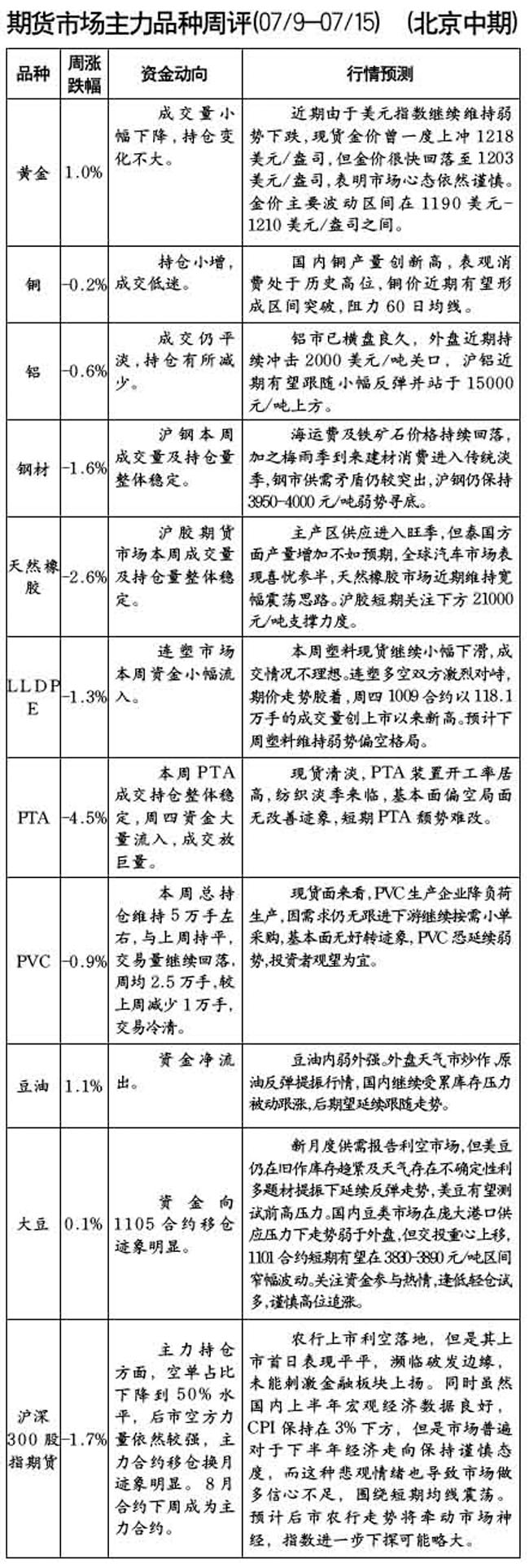 期貨市場主力品種周評(píng)[2010.07.09-2010.07.15]