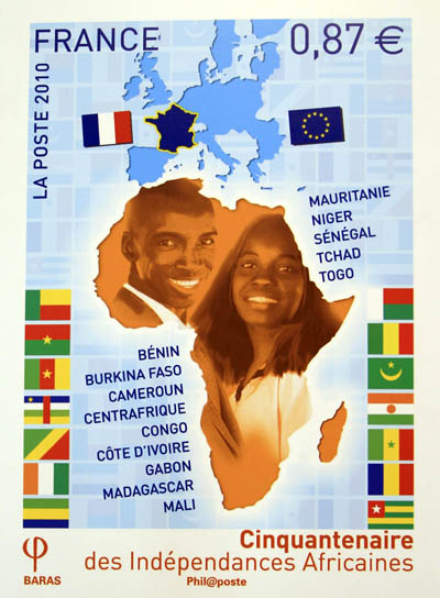 日前,法國郵政部門推出了一枚非洲獨立50周年紀念郵票,這枚郵票的發(fā)行不僅要表達法國對這些非洲國家的祝賀,還是法國對于這些非洲國家及其人民所作貢獻的認可,更是法非友好的再次證明。 圖為法國發(fā)行的非洲獨立50周年紀念郵票票樣。新華社記者 張玉薇/攝