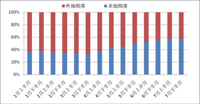 新政一百天,外地人購房比例已經(jīng)下降到43%左右,比調(diào)控前的商貸最高峰4月上半月比重下降高達24%。