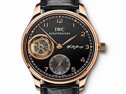 請(qǐng)注意,來(lái)自正西270度的一股強(qiáng)烈旋風(fēng)正在接近。這并不是天氣警報(bào),這是對(duì)全新葡萄牙陀飛輪手動(dòng)上鏈腕表最好的概述——法語(yǔ)中的陀飛輪就是旋風(fēng)的意思。旋轉(zhuǎn)框架中的擒縱機(jī)構(gòu)同樣清晰地展露在9點(diǎn)鐘位置,以航海的說(shuō)法就是正西270度。葡萄牙陀飛輪手動(dòng)上鏈腕表沿襲限量版葡萄牙三針一線陀飛輪腕表的風(fēng)格,將小時(shí)顯示單獨(dú)設(shè)置在一個(gè)小表盤(pán)上,精妙的設(shè)計(jì)特別奉獻(xiàn)給熱愛(ài)早期天文臺(tái)表的人士。 全新的葡萄牙陀飛輪手動(dòng)上鏈腕表配備雅致的燕尾式指針和鐵軌式分鐘圈,在外觀上保留了葡萄牙系列的鮮明特色。只要葡萄牙陀飛輪手動(dòng)上鏈腕表一露面,總是成為眾人矚目的焦點(diǎn):一開(kāi)始,它只是從佩戴者的恤衫衣袖下嶄露一角。然而,它那醒目的特征昭示著其身份:一款葡萄牙腕表、一款精良的標(biāo)志性杰作,其表盤(pán)上還印刻著公司美籍創(chuàng)辦人佛羅倫汀·阿里奧斯托·瓊斯剛健有力的簽名。當(dāng)最后三分之一的表盤(pán)從衣袖下完整展現(xiàn)時(shí),懸浮的分鐘陀飛輪才正式亮相,完美展現(xiàn)其表中貴族的身份。陀飛輪一直被認(rèn)為是高超技藝和精致鐘表品位的象征。面對(duì)如此精密運(yùn)作的機(jī)械構(gòu)造,任誰(shuí)都會(huì)贊嘆不已。 延續(xù)傳統(tǒng)的信念同樣體現(xiàn)在制作葡萄牙陀飛輪手動(dòng)上鏈腕表的技術(shù)中。通過(guò)透明藍(lán)寶石玻璃表底清楚可見(jiàn)IWC萬(wàn)國(guó)表自制98900型機(jī)械機(jī)芯。在沙夫豪森表廠眾多歷史悠久的著名懷表機(jī)芯中,它是新起之秀,而且非常適合搭載于大型手動(dòng)上鏈腕表中。早在1930年代后期,首批面市的葡萄牙系列腕表已經(jīng)配置了懷表機(jī)芯。它建立在1920年代推出的98000型機(jī)芯家族的基礎(chǔ)上,經(jīng)過(guò)幾十年的打造和完善,現(xiàn)在已經(jīng)是集優(yōu)良傳統(tǒng)與前沿制表技術(shù)于一身的典范之作。精心裝飾的3/4夾板以鍍鎳銀合金制作,體現(xiàn)最早期瓊斯機(jī)芯的設(shè)計(jì)原則。視覺(jué)上承襲傳統(tǒng)的特征則體現(xiàn)在分鐘陀飛輪上帶有黃金徽章(Probus