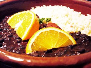 巴西大多數(shù)家庭的飲食依然以西式肉食為主,牛肉和黑豆是巴西人的最愛。黑豆是重要主食,此外還有褐豆、白菜豆等豆類。魚和豬肉鮮見,烤牛肉、烤雞肉加上豆湯、米飯、蔬菜沙拉、炸薯?xiàng)l或者土豆泥,是巴西百姓家中最常見的菜單,而且,這樣的一日三餐幾乎是百吃不厭的。 巴西米飯(Brazil-arroz)的做法與眾不同。它介于中餐炒飯與泡飯之間,通常的做法是在鍋里放少許油,將生米摻和切碎的大蒜和洋蔥先炒過,再加水和鹽燜煮,水干后起鍋的米飯略帶咸味。 相對于東方人而言,巴西餐的分量都很足,許多盤子都是為兩人份設(shè)計(jì)的,花不了多少錢就能吃得很飽。典型的巴西餐叫做Prate