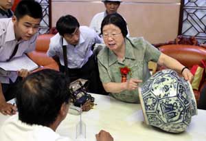 “故宮、國博鑒定專家聯(lián)合走進紫砂名城陶都宜興鑒寶”活動日前在江蘇省宜興市中國陶都陶瓷城舉行。著名陶瓷鑒定專家葉佩蘭、雜項鑒定專家張淑芬、書畫鑒定專家蔣文光一起為當?shù)厥詹貝酆谜哌M行收藏知識公益講座和民間鑒寶交流,吸引了眾多收藏愛好者攜“寶”而來。