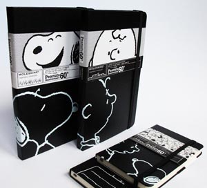 《花生漫畫》一向極受歡迎,角色之間的有趣對話是不可或缺的靈魂。 本著這個特色,口袋筆記本的封面便呈現(xiàn)出角色之間的互動和交流。 《花生漫畫》最具代表性的角色亦會個別地出現(xiàn)在大型筆記本封面上,包裝紙條分別印上兩個主要角色史努比和查理-布朗的特寫,筆記本上以白色刻上人物的側(cè)面。在兩本Moleskine紙條和封面上們都會印有“Peanuts