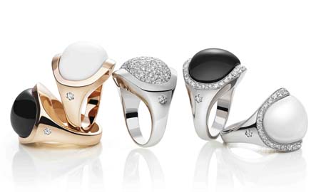 萬寶龍品牌繼白雪美人之EtoiledeMontblanc鉆飾珠寶系列的三款18K金戒指后,又于近期推出了兩款新品,均為白金鉆石戒指。兩款最新設(shè)計采用白金材質(zhì)綴以黑色縞瑪瑙或白瑪瑙,用鉆石搭配,在設(shè)計和外觀上令人眼前一亮?傊亓窟_0.8克拉的裝飾鉆石由不同大小的圓形明亮鉆石構(gòu)成。該系列戒指環(huán)上更鑲嵌有獨一無二的萬寶龍星形美鉆。