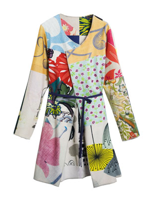 靜謐的東方色調與沖撞的西方色彩,精致的東方圖案與抽象的西方圖案,所有這些元素一起作用于真絲、高級棉、羊毛、羊絨、混紡、薄羊皮、涂層等極具藝術表現(xiàn)力的面料之上,在“多一分則多、少一分則少”的細膩剪裁間,2010秋冬,時尚大師杜福爾讓鄂爾多斯時裝變身為可穿著的藝術。 極具藝術設計感的羊絨衫依然是鄂爾多斯的標志和特色,但同時,杜福爾還推出了平絨外套、風衣、羊絨大衣、棉服、羽絨服、連衣裙、半身裙、褲裝等系列時裝以及一系列的配飾。