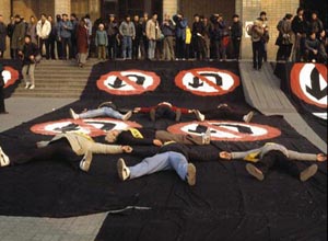 | 1989年2月,第一個(gè)中國現(xiàn)代藝術(shù)大展,藝術(shù)家們在不準(zhǔn)調(diào)頭的標(biāo)識上展示創(chuàng)意。 | 我們的工作室越來越大了,我們的展覽越來越多了,我們的飯局越來越豪華了……我們的思念越來越淺了,遺忘能力越來越強(qiáng)了,孤獨(dú)越來越深了,記憶越來越短了,我們的過去越來越遠(yuǎn)了——