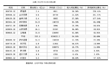 海通證券對(duì)白酒上市公司的中報(bào)進(jìn)行分析稱(chēng),上半年白酒上市公司收入利潤(rùn)合計(jì)增速維持高位,主要在于2009年上半年基數(shù)較低:13家白酒上市公司上半年實(shí)現(xiàn)收入257.5億,同比增長(zhǎng)34%,其中一季度收入增長(zhǎng)35%,二季度收入增長(zhǎng)33%,上半年實(shí)現(xiàn)凈利潤(rùn)83億,同比增長(zhǎng)30.7%,其中一季度凈利潤(rùn)同比增長(zhǎng)28%,二季度凈利潤(rùn)增長(zhǎng)34.5%。 報(bào)告預(yù)計(jì)今年下半年白酒企業(yè)收入將逐步放緩至平穩(wěn)狀態(tài)10%左右,但下半年合計(jì)凈利潤(rùn)增速仍將維持高位,同比增長(zhǎng)將達(dá)約35%左右。預(yù)計(jì)全年13家白酒上市公司合計(jì)收入和凈利潤(rùn)增速分別為19%和29%左右,這個(gè)增長(zhǎng)速度仍舊足以讓白酒股獲取超額收益。從6—7月份高檔白酒終端零售價(jià)的普漲來(lái)看,估計(jì)很多白酒公司三季度的發(fā)貨量將得到可靠保障,經(jīng)銷(xiāo)商補(bǔ)庫(kù)存的過(guò)程可能將一直延續(xù)到明年春節(jié)。 海通證券認(rèn)為,上半年白酒企業(yè)凈利潤(rùn)增速低于收入增速主要是因?yàn)橄M(fèi)稅率提高了2—3個(gè)百分點(diǎn),但下半年翹尾因素逐步減弱,凈利潤(rùn)增速將逐步恢復(fù)。中國(guó)政府從2009年下半年開(kāi)始提出從嚴(yán)增收消費(fèi)稅,而公安部門(mén)也在去年底從嚴(yán)打擊酒駕,并于今年4月份嚴(yán)格規(guī)范交通法。中長(zhǎng)期來(lái)看,無(wú)論是酒精飲料的消費(fèi)稅,還是其他行政、法律,對(duì)酒精飲料消費(fèi)的限制力度都會(huì)提高。中長(zhǎng)期來(lái)看,“少喝酒、喝好酒”是大勢(shì)所趨,白酒業(yè)中長(zhǎng)期產(chǎn)品結(jié)構(gòu)調(diào)整仍將深化。