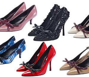 裝飾,靈感源自20世紀(jì)50年代的流行風(fēng)潮。尖頭、細(xì)高跟是“Fiocchetto”女鞋的主要特點,作為2010/11秋冬系列而推出!癋iocchetto”女鞋采用多種材質(zhì)制成,