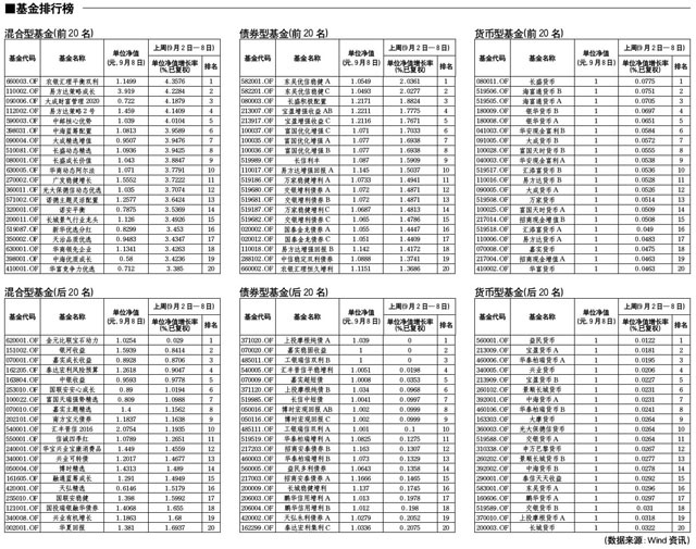 混合型基金排行榜[2010-09-10]