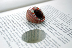也許年少的時候你也折過紙戒指,不過今天看到的紙戒指,跟當年你的那枚真是很不同。Jeremy May從書本中挖出一部分,用獨特的壓制方法把上百頁的紙張壓到一起,雕刻成形狀獨特的戒指,再細心打磨出光澤,最后的最后,把成品的戒指再放回書本切出的空間里。書頁上的文字會在戒指上若隱若現(xiàn),選一本有寓意的書本來制作這么一枚有心意的紙戒指,應(yīng)該很浪漫吧?