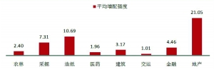 從增配強度來看,平均增配強度較大的行業(yè)主要有房地產(chǎn)(21.05)、采掘(7.31)、金融(4.46)、建筑(3.17)、農(nóng)林牧漁(2.40),也就是說,上周相對較多的資金流入這幾個行業(yè)。