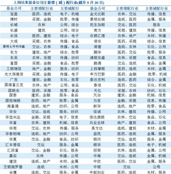 圖1:上周各行業(yè)基金平均增配強度(截至9月30日)