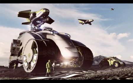 在沙漠中尋找適于建立人類殖民地的所在無(wú)疑是一項(xiàng)艱巨任務(wù),但如果有“沙漠螳螂”幫助,情況便大不一樣。這款交通工具外表怪異而粗曠,利用其獨(dú)特的運(yùn)動(dòng)系統(tǒng)征服任何類型的地形。此外,它還可以用于拖拉裝載原料的貨車和乘客,從一個(gè)居住地前往另一個(gè)居住地。