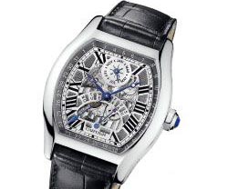 卡地亞的這枚萬年歷表,讓人眼前一亮,原因在于將甚少有變化的萬年歷表盤做出了新意。它以12點(diǎn)位置的圓盤指示月份以及閏年,日歷被安置于表圈。星期顯示則很俏皮地坐落在“彎彎橋上”。Tortue表殼極具傳奇色彩,與整個(gè)設(shè)計(jì)相得益彰。