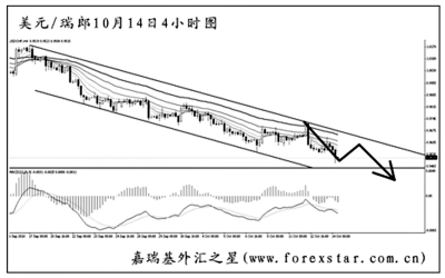 ▲美元兌瑞郎雖然在關(guān)鍵點位遭遇了一定的阻礙,但還是將2008年3月的低點0.9615強(qiáng)力跌破,從圖上看,下方已經(jīng)見不到任何有效支撐了,目前的思路就是看空。算上本周的話,周線圖已收出5連陰,在將圖中道氏高點0.9730升破前,建議不要開立任何的多單。