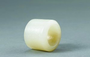 扳指起源于古代狩獵活動(dòng)中,早期叫韘。使用時(shí),將韘套于弓箭手拉弦的拇指上,以起到保護(hù)手指不被弓弦勒傷的作用。韘的質(zhì)地比較多樣,以皮革為材質(zhì)的韘實(shí)用性較強(qiáng),而玉韘是為了體現(xiàn)佩戴者的身份和地位?脊刨Y料中,最早的玉韘當(dāng)屬1976年河南省安陽(yáng)市殷墟婦好墓出土的一件青玉韘,這件玉韘為圓筒形,下端平齊,上端斜口,可套入成年人拇指。其外壁以雙勾線和平地隱起手法雕飾獸面紋,在獸面紋一側(cè)有兩個(gè)圓孔,相對(duì)的一面有勾弦用的凹槽。凹槽的存在說(shuō)明早期玉韘具有一定的實(shí)用性,只是隨著戰(zhàn)爭(zhēng)規(guī)模和作戰(zhàn)方式的變化,以及玉禮制觀念的逐漸滲透,玉韘的實(shí)用性才越來(lái)越削弱,而裝飾性越來(lái)越顯示出來(lái)。正如《詩(shī)經(jīng)·衛(wèi)風(fēng)·芄蘭》所云:“芄蘭之葉,童子佩韘。雖則佩韘,能不我甲。容兮遂兮,垂帶悸兮!