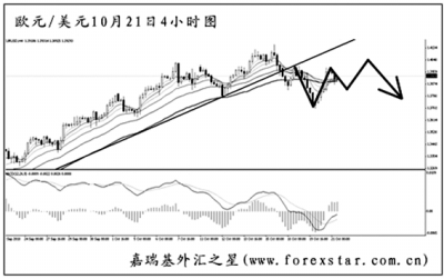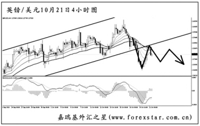 ▲英鎊兌美元短線下跌力度強(qiáng)勁,此前4小時圖持續(xù)的MACD頂背離信號發(fā)揮了一定的效果。前方高點阻力1.6000一線并未能有效突破,同時上升通道下沿跌破之后,英鎊面臨一段較為明顯的調(diào)整走勢。現(xiàn)在匯價在對通道進(jìn)行回抽,操作上以小倉做空英鎊為主。