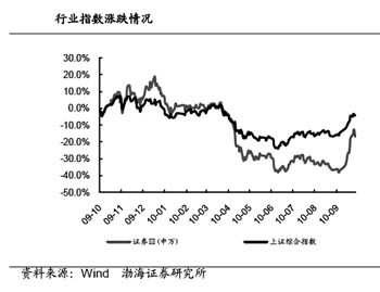 渤海證券發(fā)布的報告表示,進入10月份后,市場成交量逐漸放大,大盤最高點位超過3000點。我們認為人民幣升值和通脹預期下充足的流動性支持行情繼續(xù)看漲?紤]到目前證券行業(yè)仍處于估值底部、預期券商三季報整體業(yè)績表現(xiàn)良好以及基于第三批融資融券試點券商有望獲批的市場預期,我們維持證券行業(yè)的“買入”評級。我們看好宏源、華泰、東北、廣發(fā)、中信、國元和海通證券。