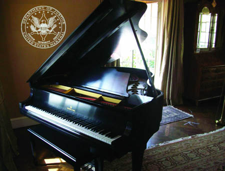 金融巨騙麥道夫及其妻子的財(cái)產(chǎn)將于11月13日在紐約進(jìn)行拍賣。這些拍賣的物品包括麥道夫妻子露絲的鑲有10.54克拉鉆石的訂婚戒指,其價(jià)值為30萬美元、價(jià)值3.9萬美元的1917年產(chǎn)施坦威鋼琴、麥道夫的舊書桌和一個(gè)公牛形狀的銅鎮(zhèn)紙。圖為施坦威鋼琴。(圖片由紐約聯(lián)邦法院提供)