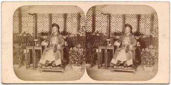 現(xiàn)身2010華辰影像秋拍的《廣州將軍》是目前中國影像收藏市場已知年代最早的原版老照片,這張8×15厘米大小的蛋白立體原版老照片,由攝影家瑞士人皮埃爾·約瑟夫·羅西耶(PierreJosephRossier,1829-1897)于1858-1859年拍攝制作。